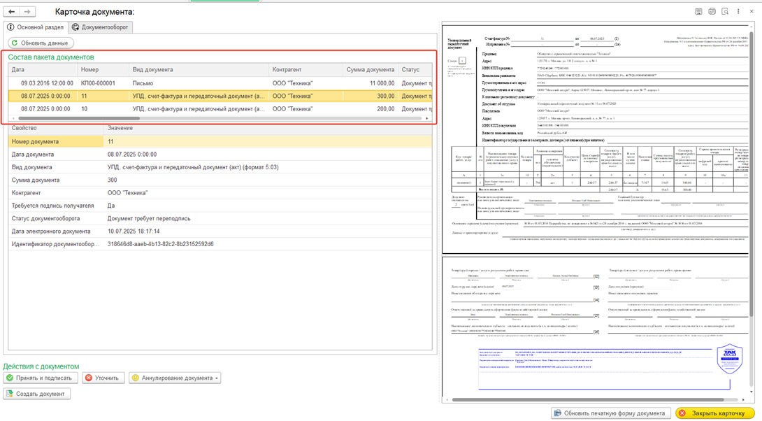 Для просмотра информации о пакете необходимо у нужного пакета в столбце «Документ» нажать на ссылку. В открывшемся окне на вкладке «Состав пакета» будут отображаться все входящие в пакет документы.
