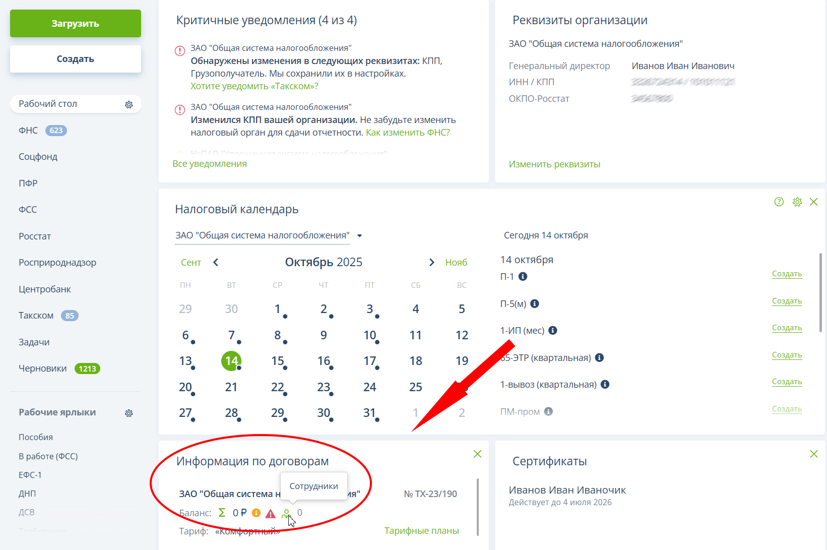 При наличии сертификата электронной подписи сотрудника его также можно добавить – тогда данные сотрудника заполнятся автоматически.
